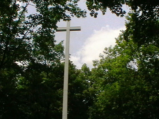 Ehrenfriedhof mit hohem Kreuz am Eingang